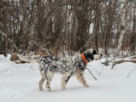 Sage is one of the newest additions to our breeding program. She is by Lexi and Trooper. Our longtime friend Jerry McAllister has been closely involved in her development and has hunted her over the past couple of seasons. Sage has hunted ruffed grouse with Jerry in northern Wisconsin, as well as sharptail grouse and Hungarian partridge in western South Dakota and eastern Montana.